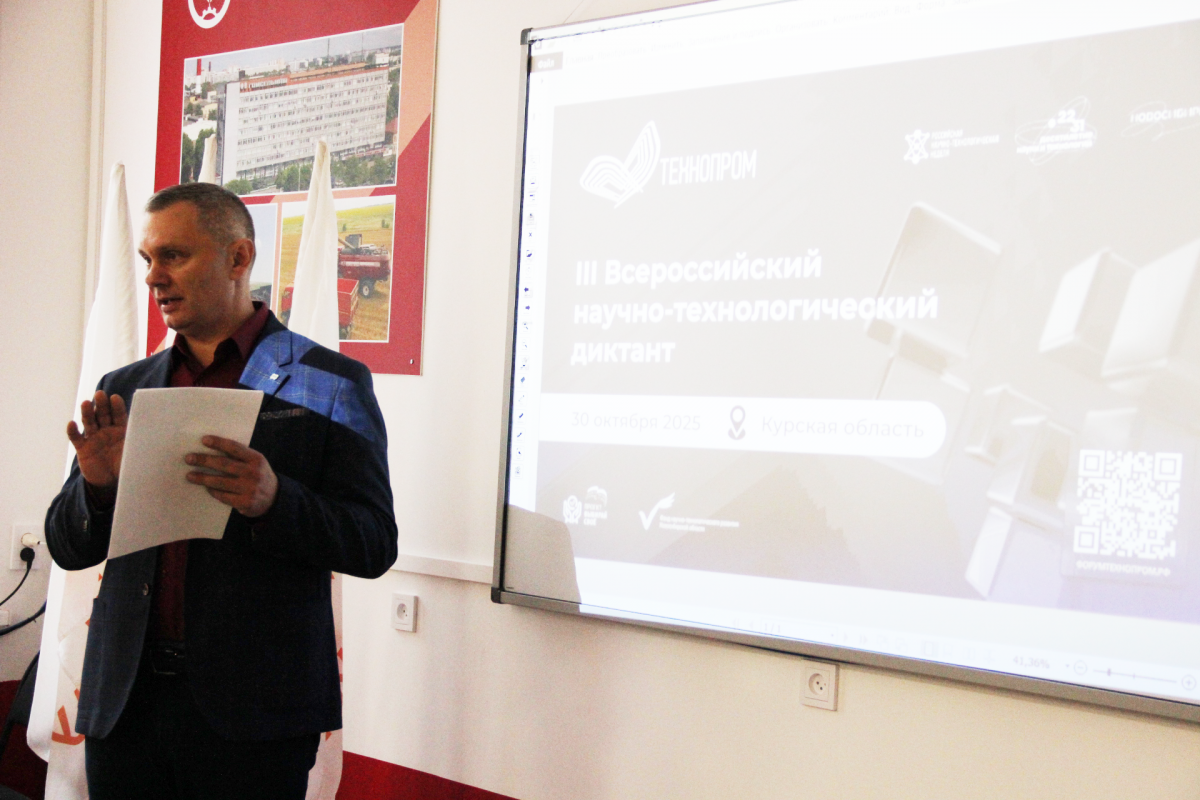 Одна из уникальных площадок находилась в Курском ГАУ. Участников диктанта поприветствовал ректор университета, региональный координатор партийного проекта «Защита животного мира» Александр Мусьял: «Диктант проводится в стенах Курского ГАУ неслучайно. Инженерное направление по подготовке кадров первым в области было организовано в нашем вузе. Удачи, ребята».